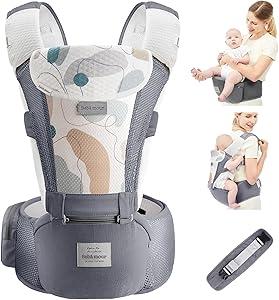 Bebamour Porte bébé Ergonomique avec Siège à Hanche/Pur Coton Léger et Respirant/Multiposition, Baby Carrier for 0-36Months(Air Grey with Designed) : Amazon.com.be: Bébé et Puériculture
