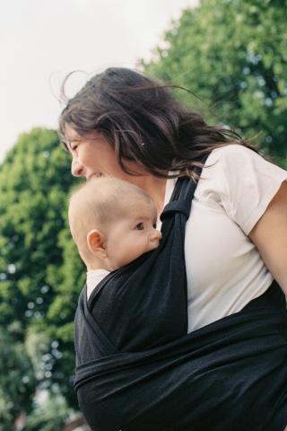 Notre porte-bébé Nomad est ultra facile à mettre : - Grâce aux deux bandeaux et au panneau dorsal ergonomique, il sera très facile à enfiler, comme un t-shirt.