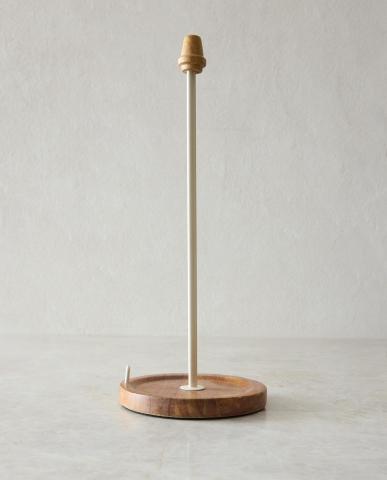 Porte-rouleau pour papier de cuisine en fer avec base en bois.