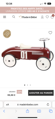 en toute liberté. Il est possible d'ajouter toutes vos envies cadeaux et de recevoir les dons directement sur votre compte. Avec les dons reçus, vous êtes alors libre d'aller acheter vos produits (comme ce 'Porteur voiture vintage Bordeaux