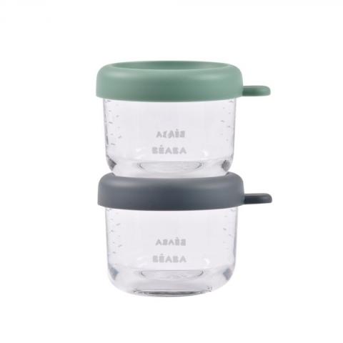 Pots de conservation en verre - Beaba - 2 portions 150 ml minéral/vert sauge