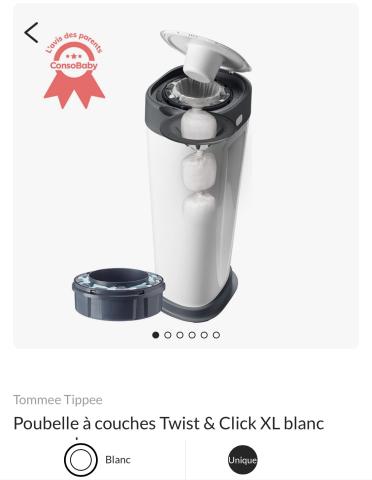 Ce produit est extrait d'une liste de naissance déposée sur Kadolog. Kadolog permet de créer des listes de naissance en toute liberté. Il est possible d'ajouter toutes vos envies cadeaux et de recevoir les dons directement sur votre compte. Avec les dons reçus, vous êtes alors libre d'aller acheter vos produits (comme ce ' Poubelle à couches Twist & Click XL blanc avec recharge | Tommee Tippee ') où et quand vous le souhaitez.