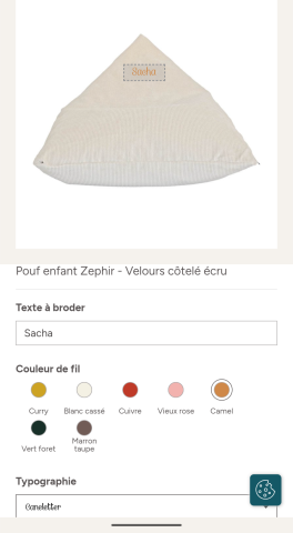 en toute liberté. Il est possible d'ajouter toutes vos envies cadeaux et de recevoir les dons directement sur votre compte. Avec les dons reçus, vous êtes alors libre d'aller acheter vos produits (comme ce 'Pouf poire enfant personnalisé housse velours écru