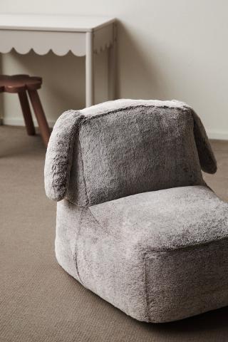 Un pouf doux et moelleux pour enfant. Il est doté d'un dossier avec oreilles cousues. Largeur : 42 cm, longueur : 53,5 cm, hauteur : 48 cm.