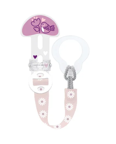 Une boucle flexible permet, en un tour de main, d’attacher une sucette à anneau, un anneau de dentition,…