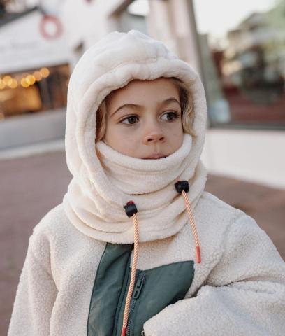Craquez pour la Cagoule enfant et bébé, Warmy Cream. Polaire douce, chaude, certifiée Oeko-Tex. Bien couvrante, ajustable, dès 9 mois. 2-en-1 snood et cagoule.