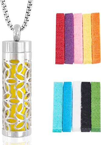 Collier d'huiles essentielles, pendentif diffuseur pour femme avec 10 tampons de parfum en acier inoxydable, cadeau d'aromathérapie