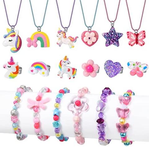 Tacobear Bijoux Enfants Fille, 18pcs Bagues Bracelets Colliers Enfants Filles avec Licorne Arc-en-ciel Papillon Etoile Coeur Princesse Bijoux Cadeaux Anniversaire pour Enfants Filles (18) : Amazon.fr: Mode