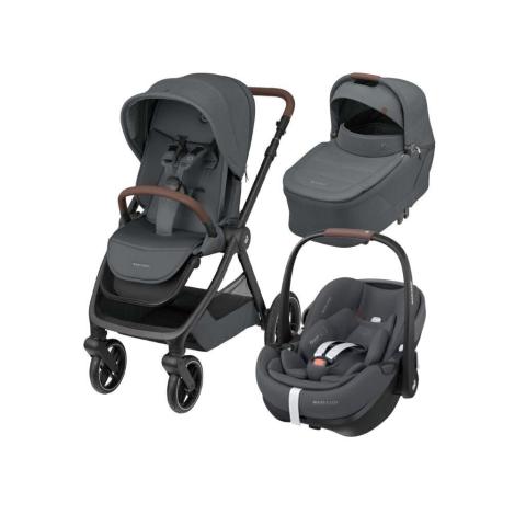 Pousette avec maxi cosy, base isofix, adaptateurs, landeau