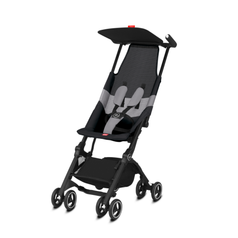 Poussette ultra compacte, compatible bagage cabine, dossier en mesh, roues doubles tout terrain, poids total de 4.6 kg.