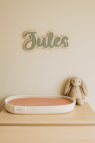 Apportez une touche poétique et minimaliste à la chambre de votre enfant avec ce prénom décoratif en bois et acrylique, réalisé sur mesure dans notre atelier en Belgique 🇧🇪Parfait pour une décoration murale douce et tendance, un cadeau de naissance ou d’anniversaire 🎁 📐 Dimensions Longueur : 50cm Hauteur : variable selon la typographie choisie 🎨 Personnalisation incluse Prénom de votre choix Assemblage bois & acrylique dans la couleur sélectionnée Réalisé à la main avec soin, pour un rendu unique et raffiné 💡 Astuce décoÀ fixer au mur, à poser sur une étagère ou à intégrer dans une composition de cadres, ce prénom devient un élément phare de la chambre de bébé ou d’enfant.