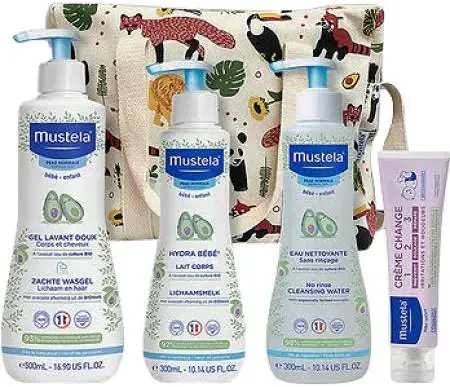 Nous adorons les produits Mustela : l'eau lavante, le gel lavant pour le bain, ...