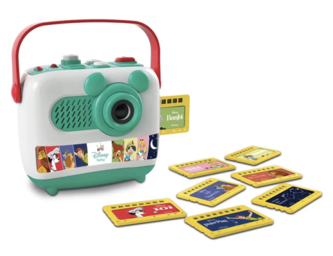 Un conteur d’histoires innovant, avec un projecteur pour captiver l’enfant pendant l’écoute avec les images des personnages classiques de Disney. Les enfants pourront écouter 8 histoires différentes en regardant les images colorées projetées sur le mur. Le conteur d’histoires est doté d’un haut-parleur.