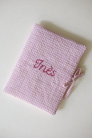 Protège-carnet de santé vichy personnalisé avec son prénom. Confectionné et brodé à la main 🖐