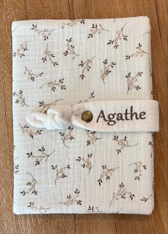Protège carnet de santé réalisé par une indépendante de la région (Au fil de nos créations), spécialement pour notre Agathe