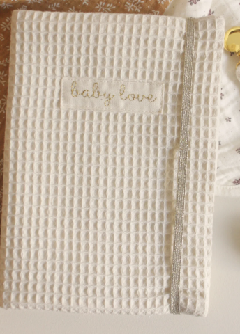 Protège carnet de santé avec le nom de bébé brodé dessus :-)