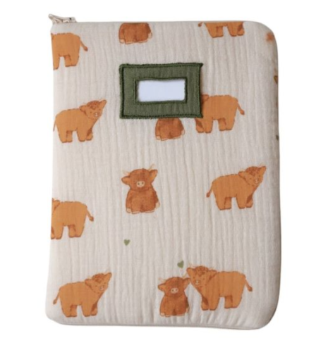 en toute liberté. Il est possible d'ajouter toutes vos envies cadeaux et de recevoir les dons directement sur votre compte. Avec les dons reçus, vous êtes alors libre d'aller acheter vos produits (comme ce 'Protège carnet de santé vaches - Bébé Highland