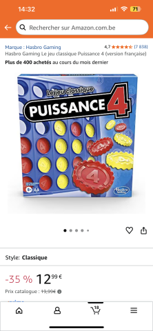 en toute liberté. Il est possible d'ajouter toutes vos envies cadeaux et de recevoir les dons directement sur votre compte. Avec les dons reçus, vous êtes alors libre d'aller acheter vos produits (comme ce 'Puissance 4