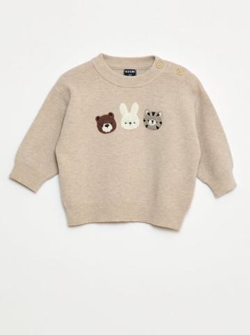 Pull à col rond en maille avec broderies - Beige - 12.00€ - Livraison gratuite en magasin Kiabi.