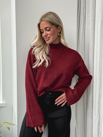 Pull côtelé col montant bordeaux. taille S