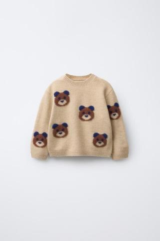 Pull en maille à col rond et manches longues. Fermeture à boutons sur l'épaule. Motif oursons sur le devant.