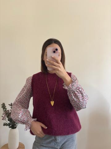 - Pull sans manches - Col rond - Couleur : bordeaux - Taille unique : du S au L - Doux au toucher- Peut piquer pour les peaux sensibles. Pour plus de confort je vous conseille de le porter avec un t-shirt en dessous si besoinLe modèle mesure 1m60 et porte habituellement une taille S/M ou 34