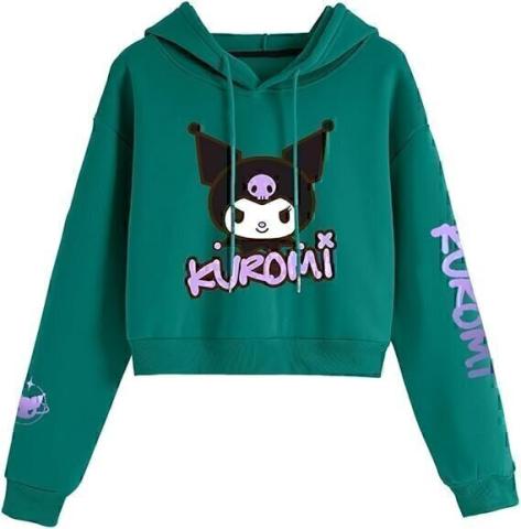 Satdflie Anime Kuro-mi Women's Girls' Short Hooded Sweatshirt with Long Sleeve Crop Top Hoodie, Green/2, XS : Amazon.fr: Fashion
