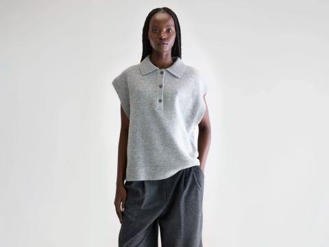 Pull sans manches oversize en laine mélangée gris clair avec un col polo classique. Découvrez les dernières tendances pour femmes.