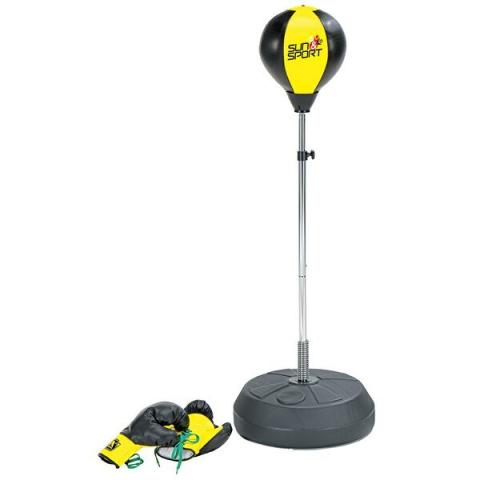 Punching ball et gants de boxe SUN and SPORT : Un punching ball sur pied pour un entraînement de boxeur. La marque de j...