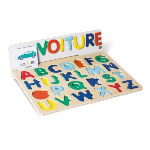 Avec ce beau pupitre magnétique, l'enfant doit reconstituer des mots écrits sur des cartes à l'aide des 26 lettres de l'alphabet. Les grandes lettres sont facilement préhensibles et leurs couleurs donnent des repères pour faciliter sa mémorisation et son apprentissage !