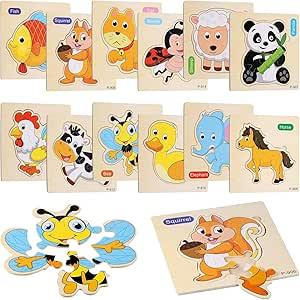 Huiguli Puzzle Bois Enfants, 12 Pièces Animaux, Jouets Éducatifs Montessori 1-3 Ans, Set Puzzle pour Cadeaux Anniversaire Pâques Halloween Noël : Amazon.com.be: Jouets