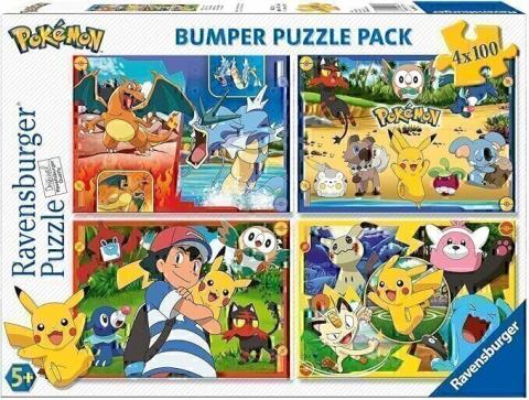 Une boîte avec 4 puzzles Pokemon de 100 pièces chacun.