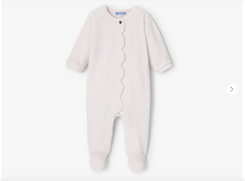 Indispensable dans la valise de maternité, ce pyjama bébé fille en coton organique dévoile une ligne chic et graphique. Idéal pour l'entrée de saison, vous pourrez associer ce pyjama à un body manches longues pour plus de confort et de chaleur. - Pyjama bébé fill en velours bouclette doux - Jeu de festons devant - Pressions invisibles devant et à l'entrejambe - Jolie idée de cadeau de naissance à offrir ou à s'offrir