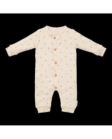 Pyjama confortable avec motif feuilles vertes sur fond sable, tissu doux.