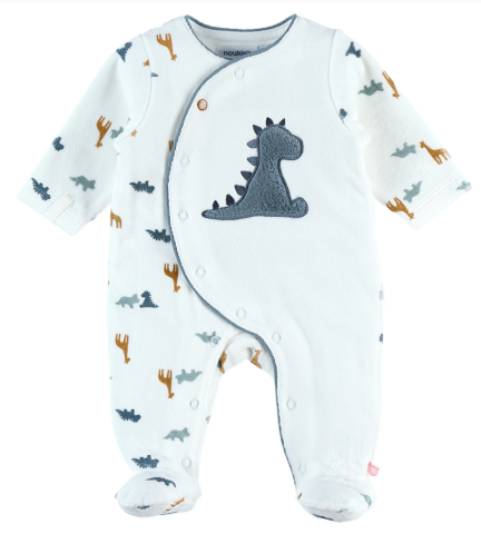 Pyjama dinosaure en velours, blanc/bleu | Noukie's