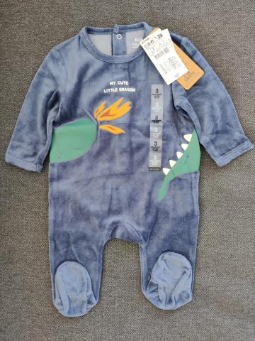 Pyjama dors-bien en velours - Bleu marine dragon - 3M