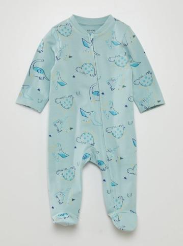 Un pyjama léger pour les nuits de bébé ! - Pyjama dors-bien - En jersey - Col rond - Manches longues - Ouverture zippée devant - Avec pieds - Motif all over