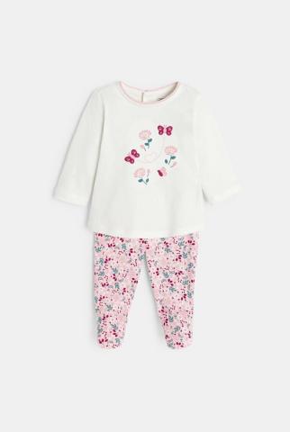 Haut manches longues imprimé fleurs et papillons entièrement pressionné dos et pantalon à pieds.