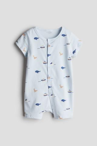 Pyjama en jersey de coton très doux avec imprimé all-over. Modèle à manches courtes avec fermeture pressionnée devant et le long d'une jambe pour faciliter le change.