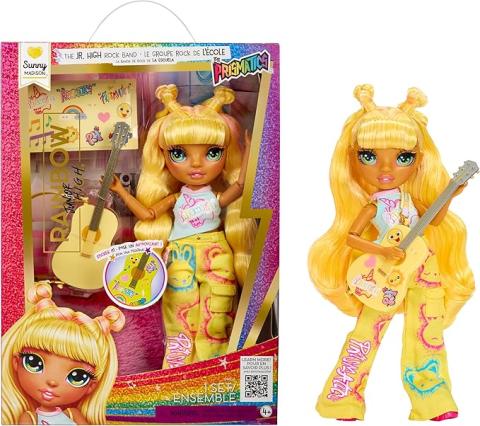 Rainbow High Junior High Rock Band - Sunny - gele modepop 23 cm met gitaar, personaliseerbaar met stickers, scharnier, schattig speelgoed voor kinderen vanaf 4 jaar : Amazon.com.be: Speelgoed