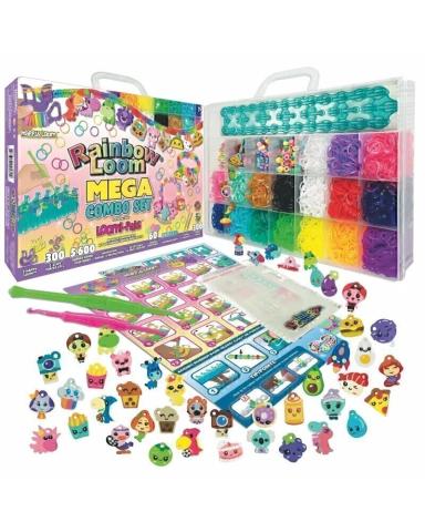 RAINBOW LOOM MEGA COMBO Il contient tous les accessoires pour créer colliers, bracelets, etc... 5600 élastiques sans latex, 300 clips en C, 60 breloques, 30...