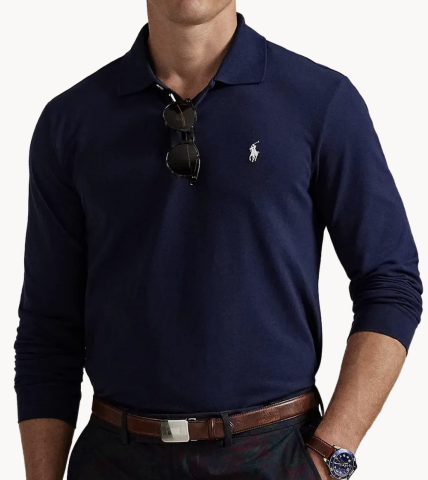 RALPH LAUREN Polo Performance Stretch Mesh, manches longues, marine