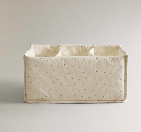 Range-vêtements pour bébé en coton avec motif floral et trois séparateurs de rangement.