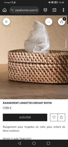 Ce produit est extrait d'une liste de naissance déposée sur Kadolog. Kadolog permet de créer des listes de naissance en toute liberté. Il est possible d'ajouter toutes vos envies cadeaux et de recevoir les dons directement sur votre compte. Avec les dons reçus, vous êtes alors libre d'aller acheter vos produits (comme ce 'RANGEMENT LINGETTES ENFANT ROTIN | Zara Home België / Belgique ') où et quand vous le souhaitez.
