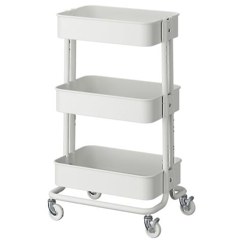 RÅSKOG desserte, blanc, 35x45x77 cm L'idéal pour une cuisine ou n'importe quelle pièce nécessitant un espace de rangement supplémentaire. Roulettes verrouillables pour une meilleure stabilité.