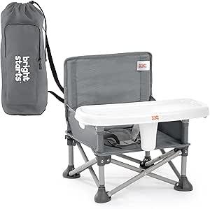 Bright Starts Pop 'N Sit Rehausseur Portable Pour Intérieur/Extérieur, Siège De Sol Avec Plateau Repas, 6 Mois À 3 Ans, Gris
