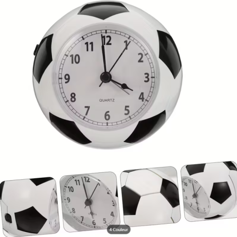 réveil foot avec design de ballon vibrant - Blanc sportif en plastique ABS, alimenté par piles, alarme et sonneries musicales pour fans de sport, décoration intérieure et extérieure, accessoires de football, piles non incluses