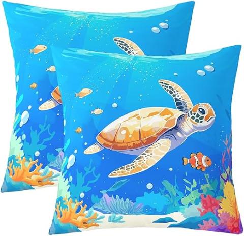 richhome Lot de 2 housses de coussin motif tortue de mer de dessin animé pour enfants, garçons et filles, 50 x 50 cm, turquoise sur le thème de l'océan, taie d'oreiller décorative, océan, marine : Amazon.com.be: Home & Kitchen