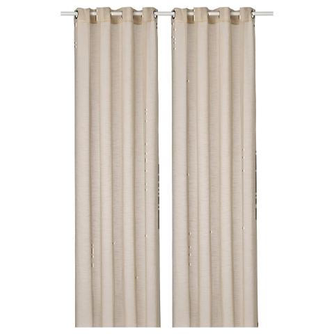 HÄLLEBRÄCKA voilage, 2 pièces, beige clair/avec oeillets, 145x250 cm Le voilage HÄLLEBRÄCKA beige clair donne une sensation de légèreté et vous permet de profiter de la vue. L'aspect du lin convient bien aux intérieurs modernes ou traditionnels et les œillets permettent facilement de jouer avec le drapé.
