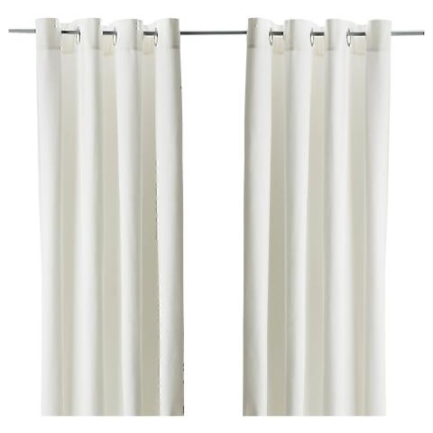 MERETE Rideaux, 2 pièces, blanchi blanc, 145x300 cm. Un rideau occultant empêche la lumière de pénétrer dans la pièce et offre de l'intimité, aussi bien le jour que la nuit, en vous protégeant des regards extérieurs.